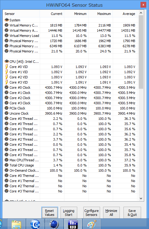 DDR3-1600のメモリを使用していますが、X.M.Pの設定をし忘れたようで 1333MHz動作となっています。