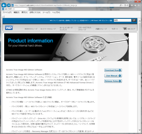 Acronis True Image WD Edition Softwareは機能が豊富なのでユーザーマニュアル(日本語)もあわせて入手しておくことをお勧めします。
