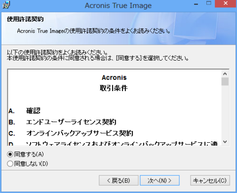 Acronis True Image WD Editionのインストーラーは日本語のため難しい点は無いとは思いますがインストール手順を紹介します。