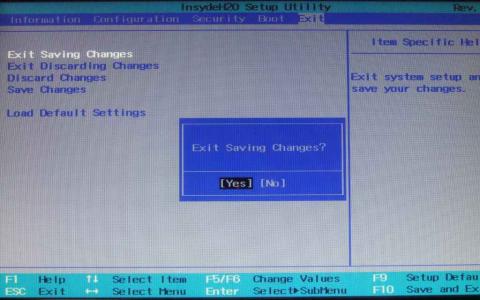 設定を保存するため、「Exit」タブより、「Exit Saving Changes」を選び、「YES」を選択します。↓