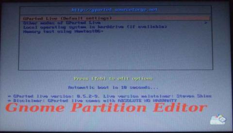 では、GParted Live CDを起動して、パーティションサイズを変更しましょう。