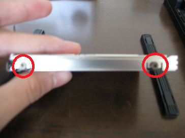 まず左右についている黒いゴムを外します。