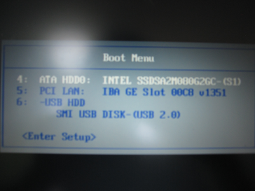 今回はUSBメモリからブートしてもらうために、一番下のSMI USB DISK-(USB 2.0)を選択します。