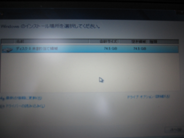 HDDのパーティションを細かく分けたい場合はドライブオプション(詳細)をクリックし、パーティションの作成を行います。