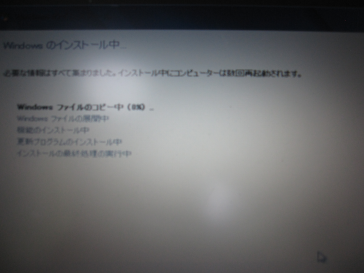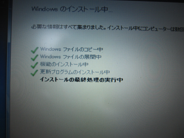 各種ファイルのコピー等が行われるのでまったり待ちます。