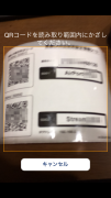 製品に添付されている、『無線LAN出荷時設定情報シート』のQRコードをカメラで読み取ります。
