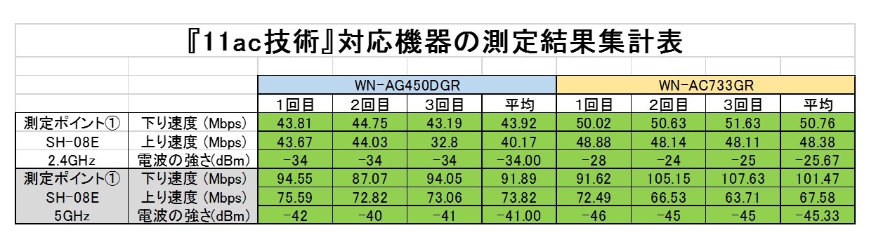 『11ac技術』対応機器を使った場合について測定結果をまとめてみました。