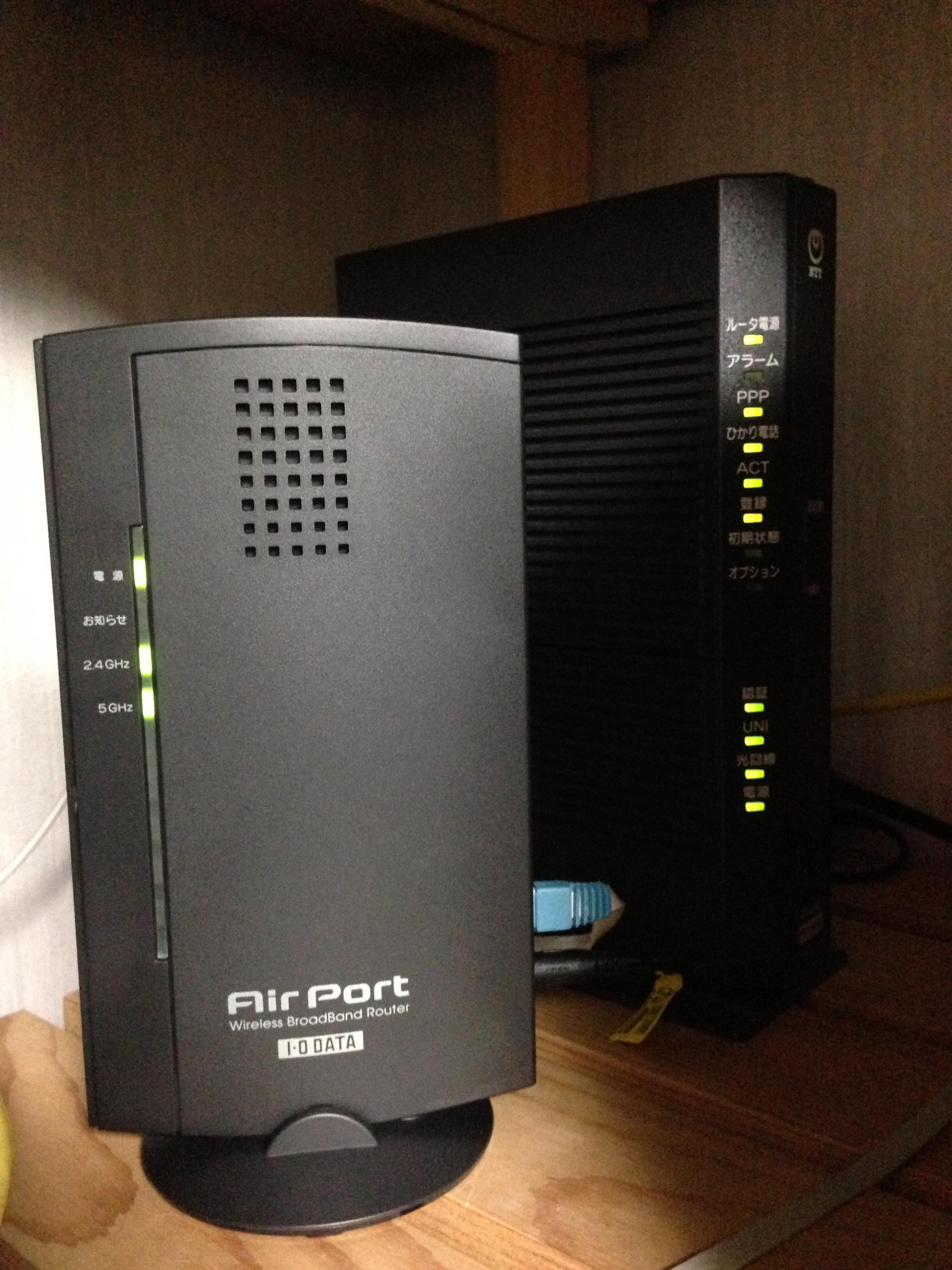 今までの親機は2階に設置して、家中IO-DATAさん一色です。