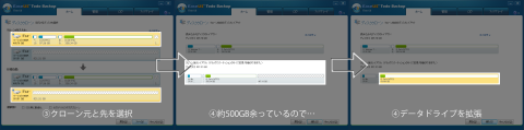 クローン元の HDD が 500GB なのに対し、WD Red は1TB なので、データ用 (録画データ保存用) パーティションを拡張しました。