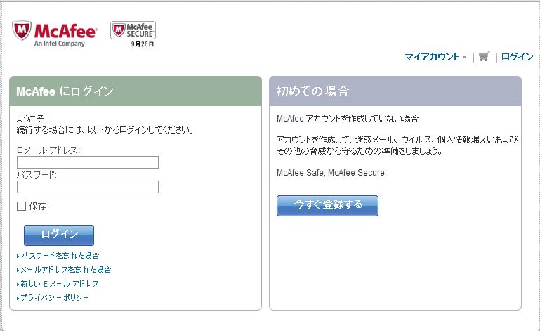 完了すると、先ほど登録したアドレスとパスワードを入力します。