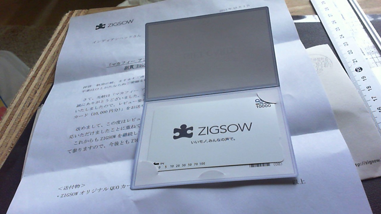 中身がZIGSOW QUOカード