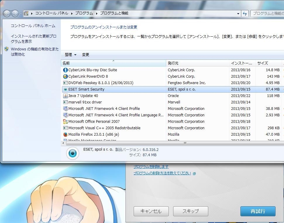 先日、ESET ファミリー セキュリティを動作させながら、2年ほど前のゲームソフトをインストールしたところ、exeファイルをウィルスと誤認して強制的に削除される事態が発生。