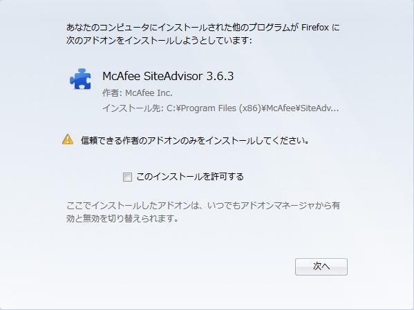 私はブラウザにFirefoxを使ってるんですが、アンチウィルスプラスのインストール後にサイトアドバイザーのアドオンをインストールするかの確認が出てきます。