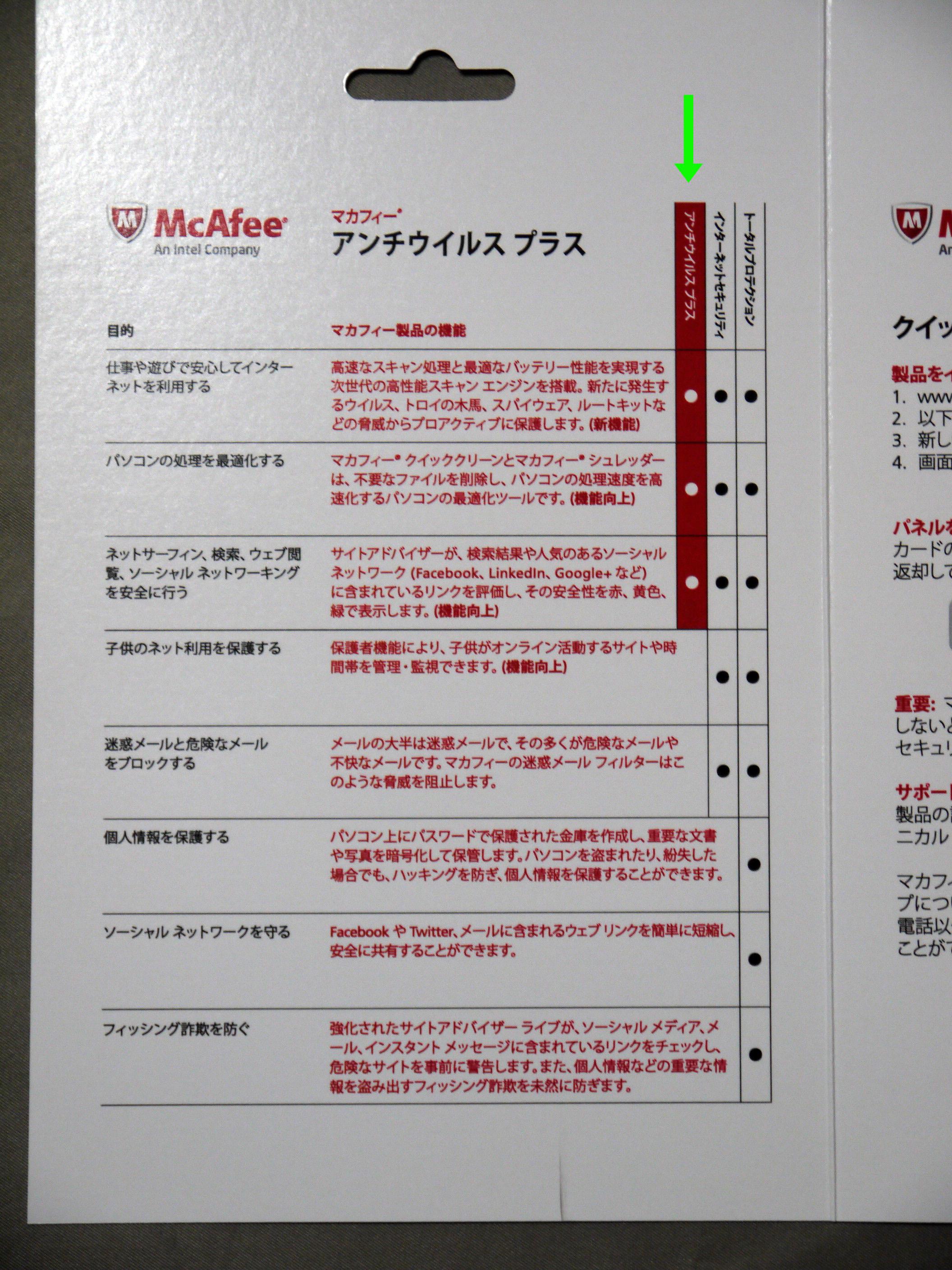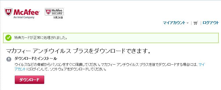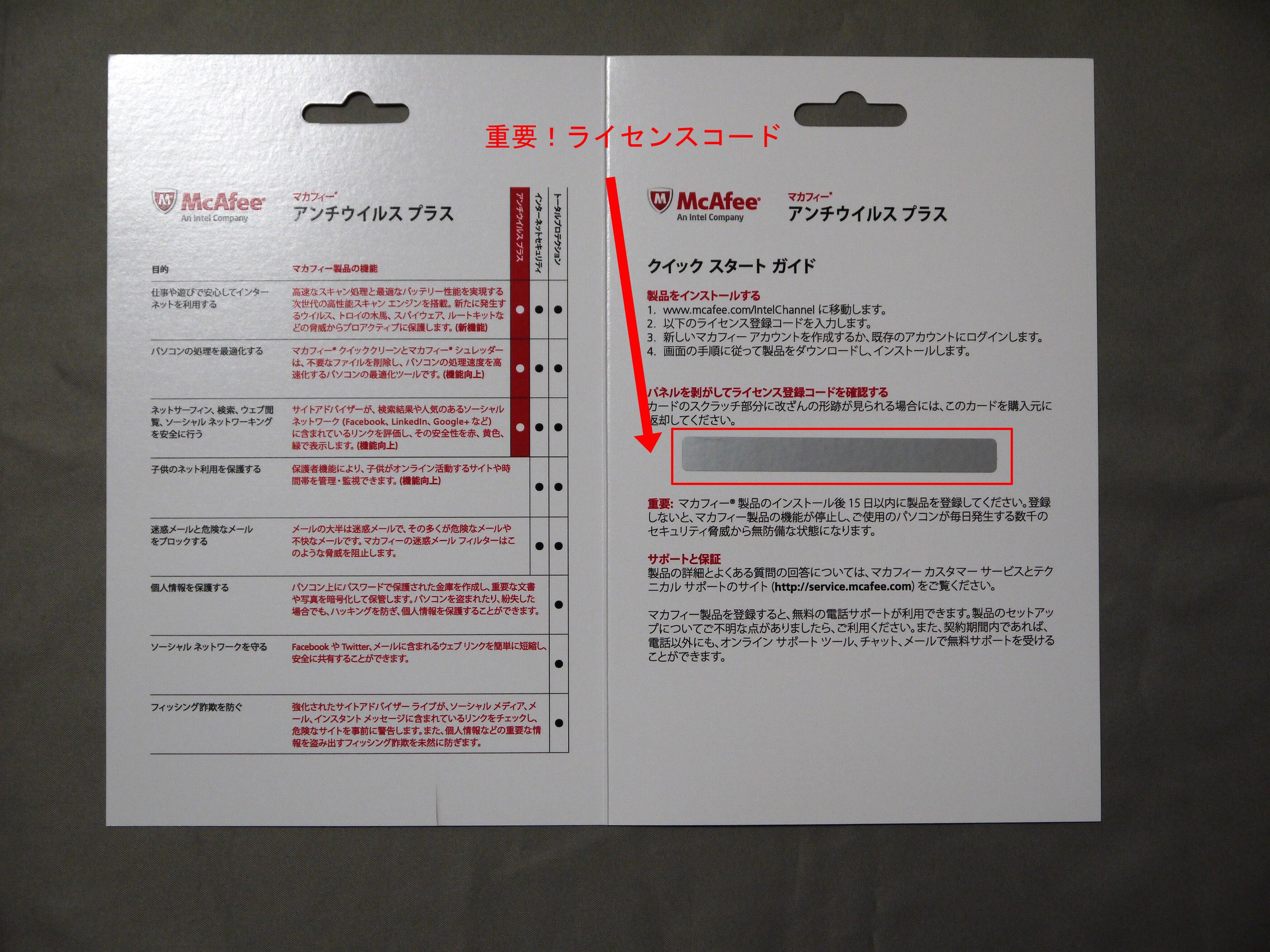 頂いたのは「マカフィー アンチウイルス プラス」のカード版(1年分)