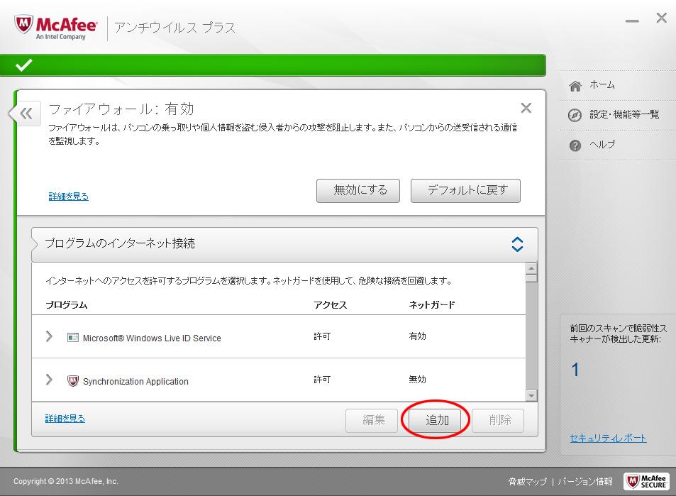ESETも同様にプログラムを選んで登録できますが、設定を細かく出来る為か思ったように使えないこともあるんですが、アンチウィルスプラスは設定項目が簡単で設定しやすいです。