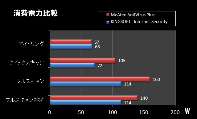 消費電力については、クイックスキャン、フルスキャンの最大値での比較をしました。