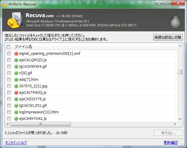 復元ソフト(recuvaなど)を使ってみたがかなり長い時間を復元に費やしてみても