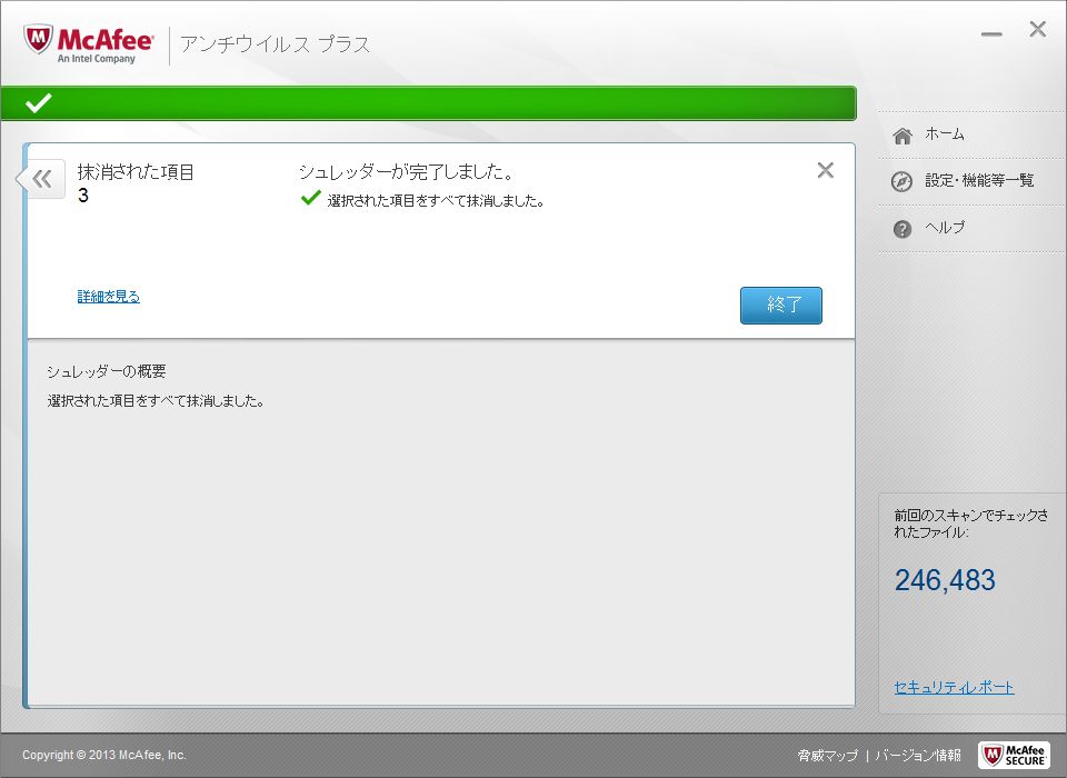今回はマカフィーを起動させてからシュレッダーを使おうと思う。
