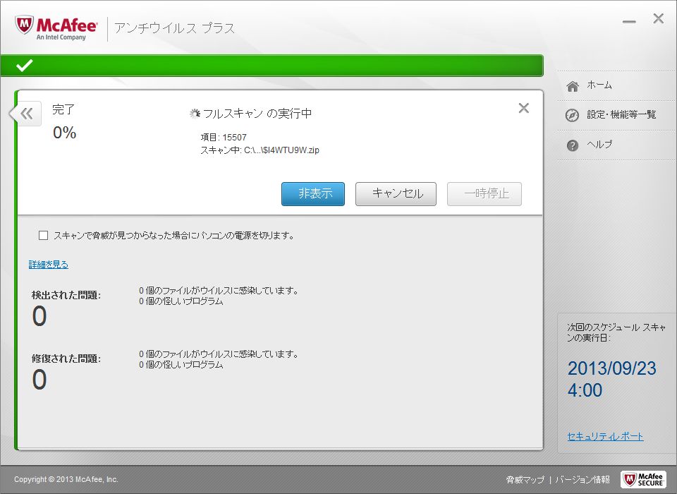 マカフィーとは違うセキュリティソフトだが職場で昼休みにスケジュール組んでた時あったが