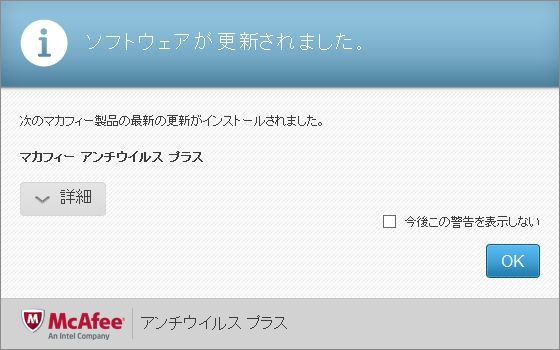 マカフィーはなんか今重くない?って思った時にどうも更新していたみたいで