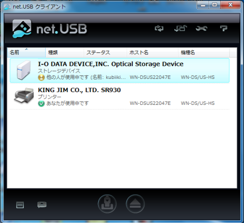 それぞれのパソコンから、net.USBクライアントでそれぞれの機器の接続の操作を行います。