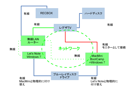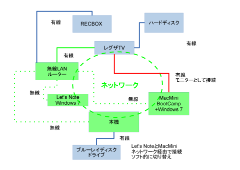 (この時点で図とはLet's NoteとMacMiniが入れ替わった接続になってます。)