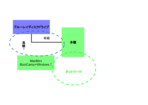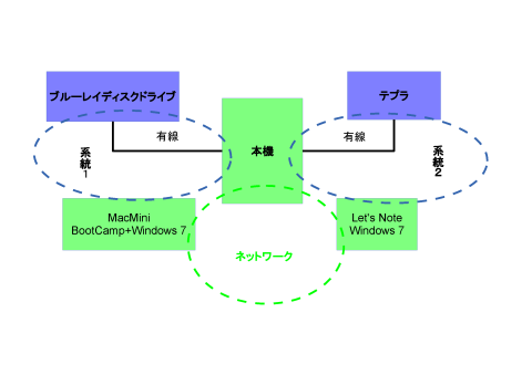 それぞれのパソコンにそれぞれの機器が接続された状態でブルーレイディスクドライブにRECBOX からダビング。
