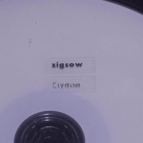 鏡文字印刷したものを、ディスクケースの蓋に内側から貼ったものです。