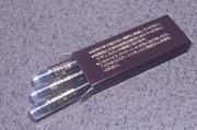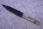 形状はプラチナの万年筆のインクカートリッジと見たところ全く同じ。スチールボールが蓋になっているタイプ。これを本体を穂首と軸を離してダミーカートリッジと交換します。ダミーカートリッジには何か液体が入っています。穂先を湿らせておく為のものでしょうか。ただの水ではないような。正体不明。