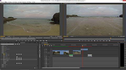 夏ほどの強烈さはないが秋の沖縄の海はこんな感じだ。ちなみにそのままの画像を使うとGopro特有の歪曲が結構激しいので、 一旦Gopro studio 2.0で歪曲補正をかけたものをAVIで書き出し、Adobe Premiere Proに読み込んでの作業だ。(解像感は若干下がる)