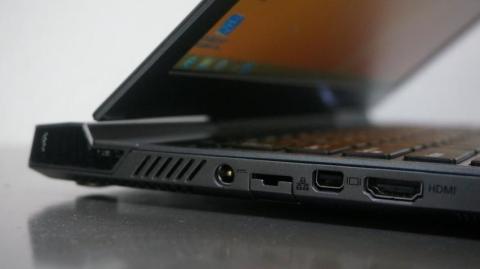左サイドにはACアダプタの充電ポートとLAN、mini DisplayPort 、HDMIがついている。