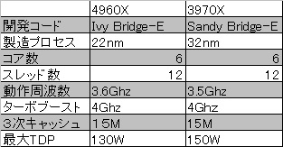 これは製造プロセスが32nmから22nmに変更になっていることやTDPが150Wから130Wに落ちているので期待できそうなところです。