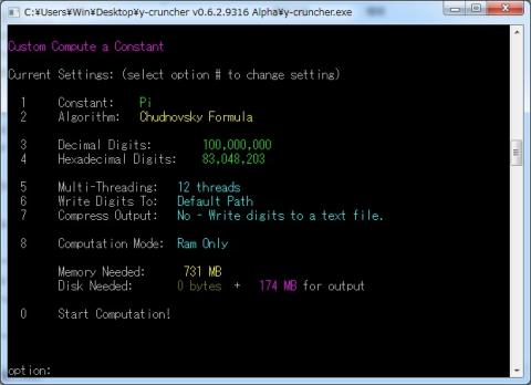 今回は先ほど紹介した10兆桁求めたプログラムを入手したのでこいつでやっちゃいます!