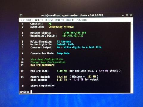 しかし、同じ円周率チャレンジャーのexchaさんが1兆桁に挑戦するらしいので、私も1000億桁ではなく1兆桁に目標修正です。