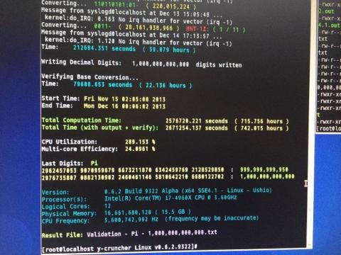 長野の男性が約1年で打ち立てた10兆桁の1/10の1兆桁とはいえ、(恐らく)1ヶ月程の計算でそれが出来てしまうのはやはりコンシューマーのCPUの性能向上によるところも大きいのでしょう。