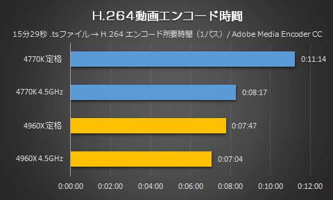 Adobe Media Encoder CCを使用して、変換にどれくらいの時間がかかるのか、Core i7-4770Kとガチンコ対決を行います。