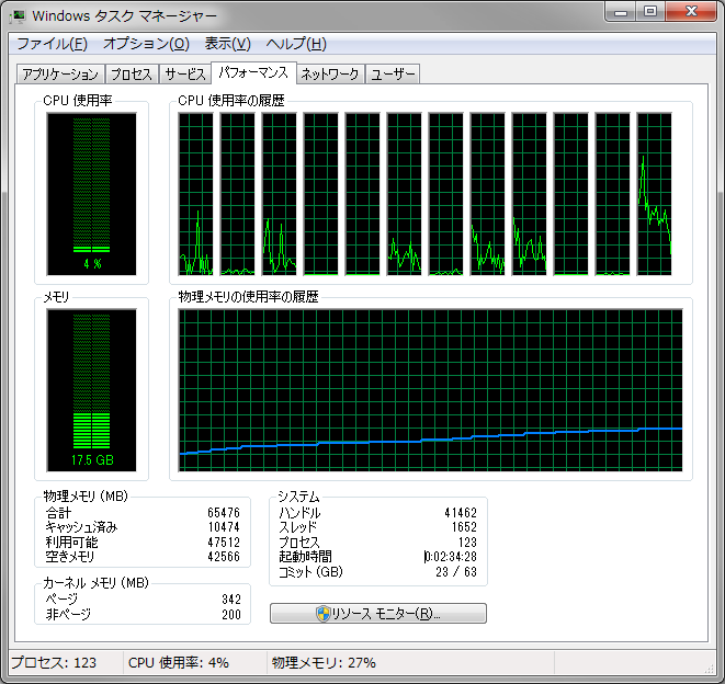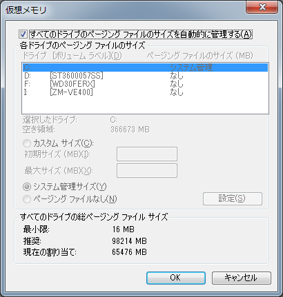 昔は64MBとかいう時代もあったなぁ…と考えると、当時に比べてメモリも1000倍になった訳ですね。感慨深いものがあります。