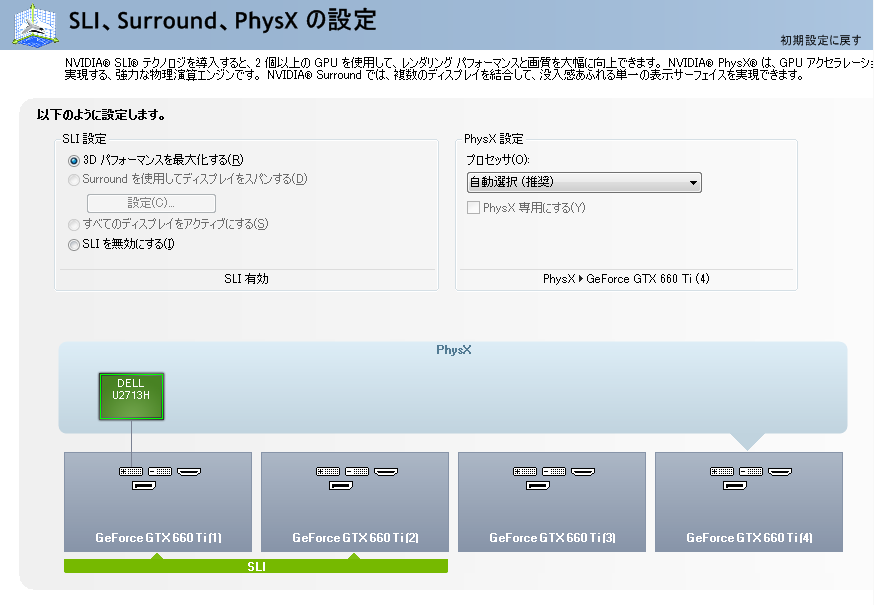 海外のフォーラムをいくつかあたったり、nvidiaのドライバの説明書きを読んでみたりしたのですが、660Tiは3wayまでは運用している人はちらほら見つかるものの、4wayとなると情報が皆無でした。