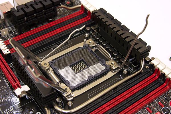 CPUも巨大なので、当然マザーボード側のLGA2011ソケットも巨大です。