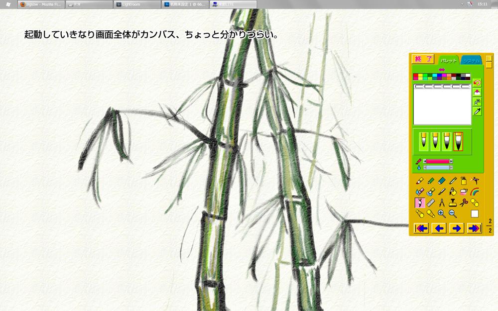ショートカットキーが効かなかったり、いきなりフルスクリーン起動でどこに描けばいいのか分からなかったりと、結構苦戦しましたw