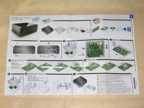 DC53427HYE仕様に一部変更されていますがCore i3モデル(DC3217IYE)に付属していたものと同様にNUCの組み立て手順も図解入りで詳しく載っているので初心者でも安心です。