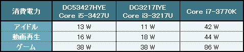 比較用にIntel DC3217IYEとIntel Core i7-3770Kの消費電力を用意しました。