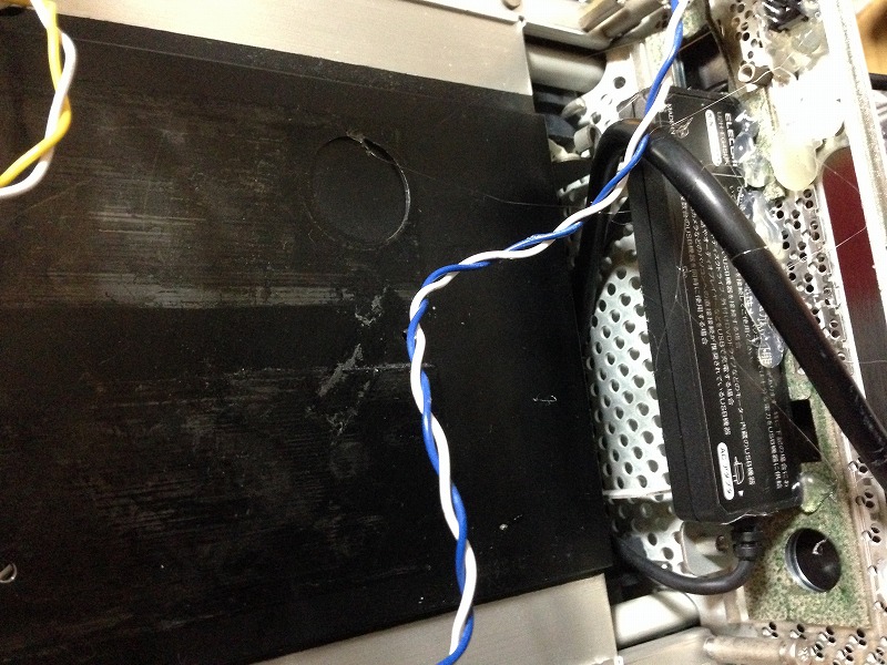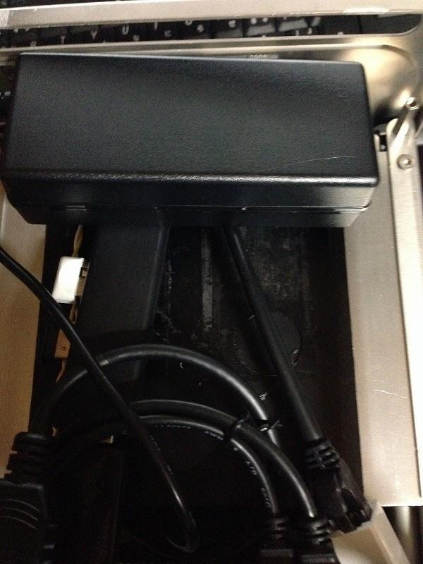 ACアダプタとHDMIケーブルを無理やり内部から引っ張りだして