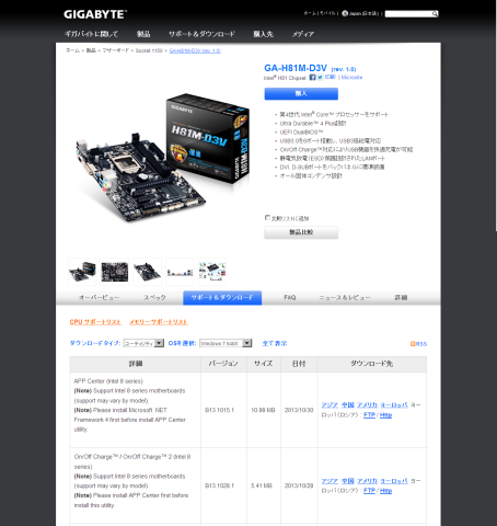 使われている「GA-H81M-D3V-JP」とでは、仕様が異なるのでしょうか?