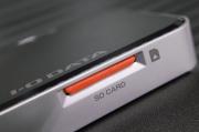 長辺側の側面にはSDカードスロットとリセットボタン(孔の先)が付いています。