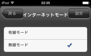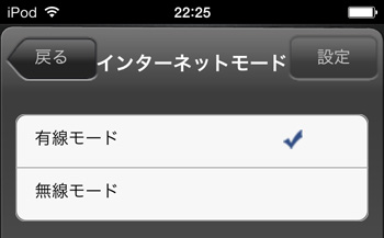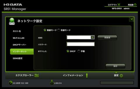1.Wi-Fiストレージが使える状態で「SR01 Manager」を起動して、設定画面のインターネット設定を「有線モード(デフォルト)」から「無線モード」に切り替えます。