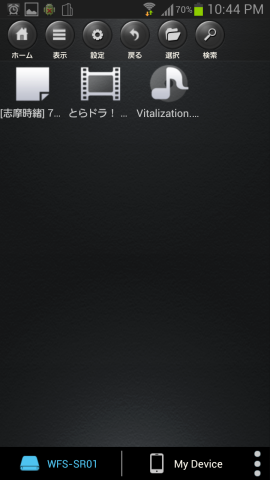 次に、ポケドラとWi-Fiで接続しアプリを起動すればUSBやSDカードの中身が表示されます。
