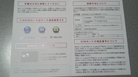 上記の通り、説明書とSIMカードが一緒に届いた他、詳細な設定情報(APN&パスワード)が載った書類が別途届きました。