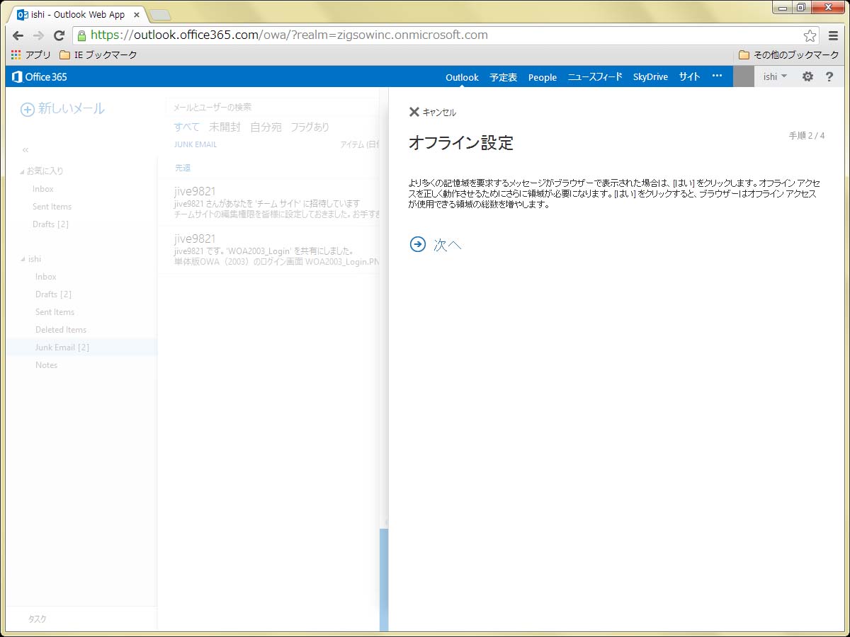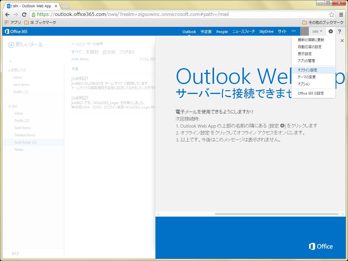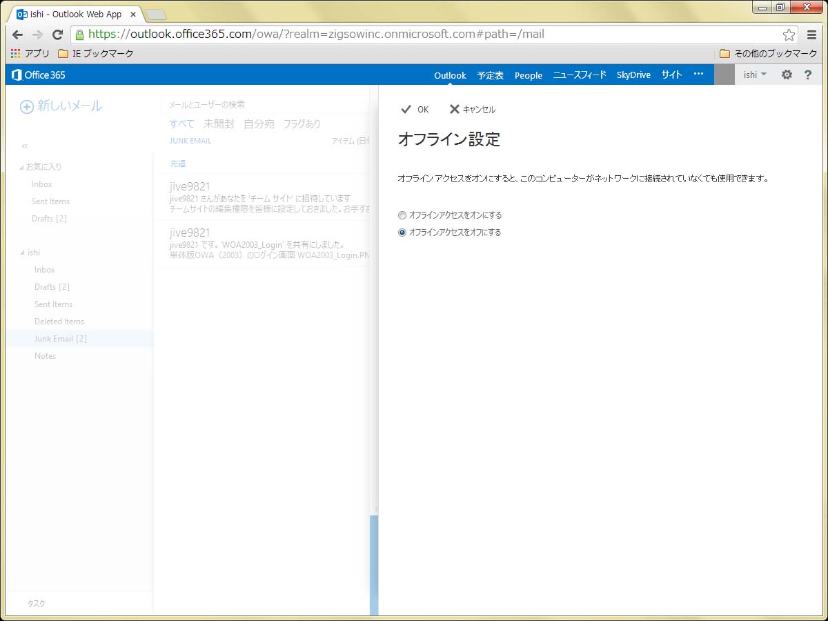 ちなみに、オフラインでもOutlook Web Appの利用を可能にする設定はありました。