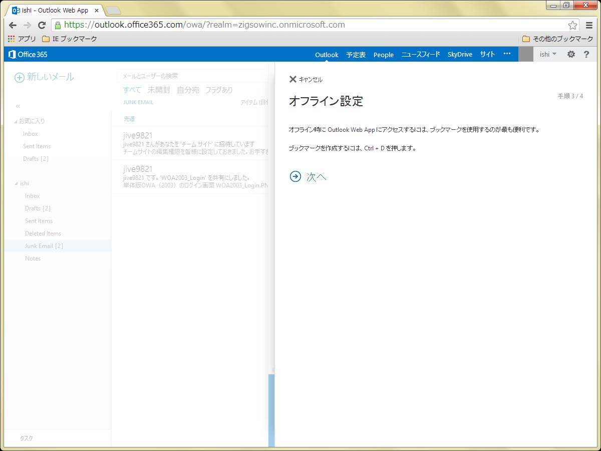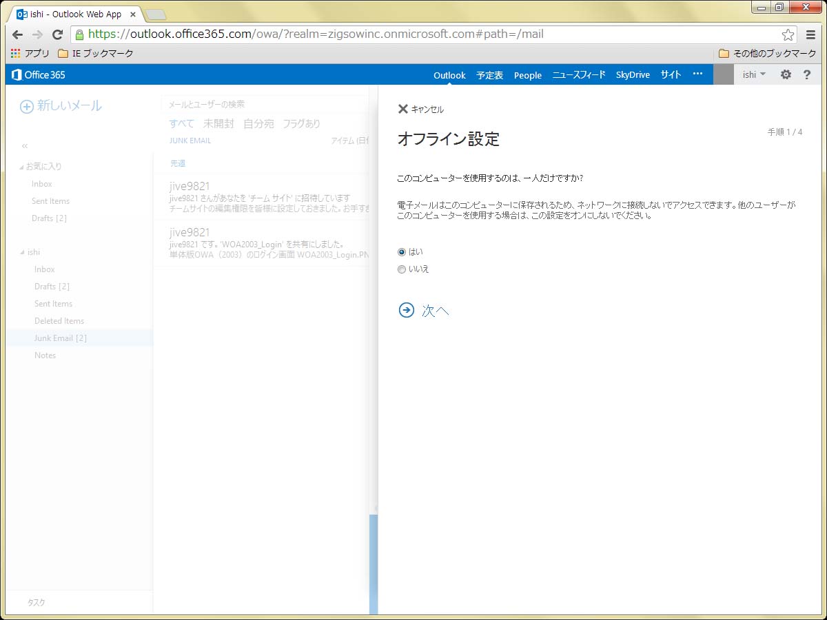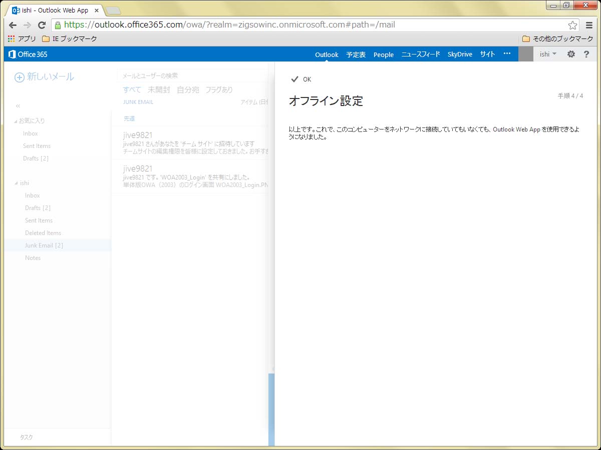 ちなみに、オフラインでもOutlook Web Appの利用を可能にする設定はありました。